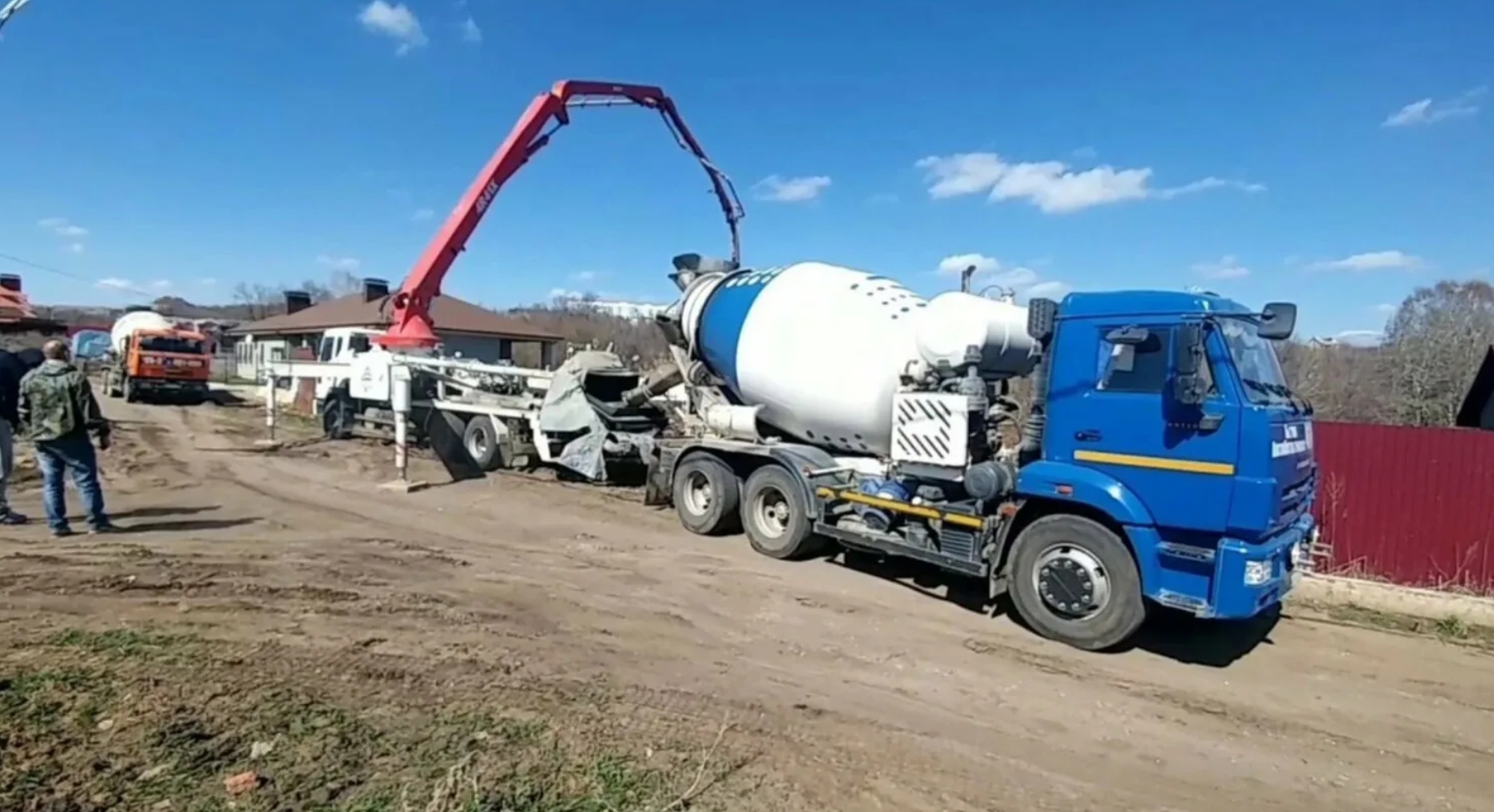 Для бетонирования фундамента нередко требуется не пара вёдер, а объём от нескольких м3 до нескольких десятков кубов. При таких масштабах ручное приготовление смеси становится нецелесообразным. Чтобы залить плиту или ленту за один приём и без «холодных швов», обычно заказывают автобетоносмесители с нужным количеством бетона и подключают бетононасос.